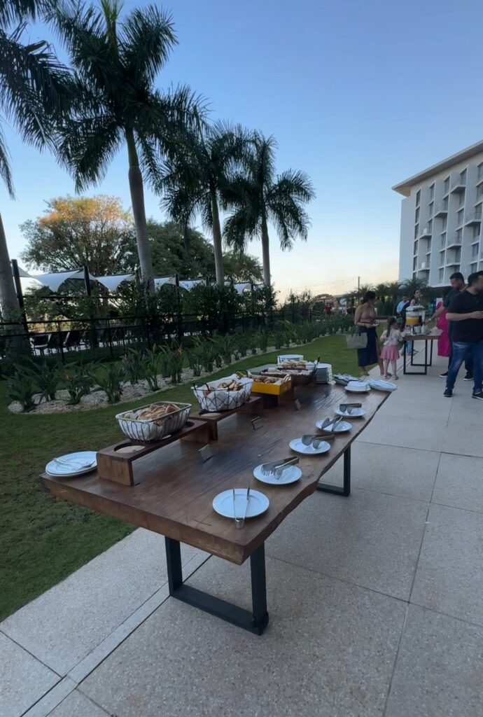 Falando em conforto, os quartos são espaçosos, bem equipados e com varandas que oferecem uma vista linda, perfeita para relaxar depois de um dia agitado. No nosso caso, conseguimos ver praticamente tudo do quarto… até o açaí servido no lanche da tarde!