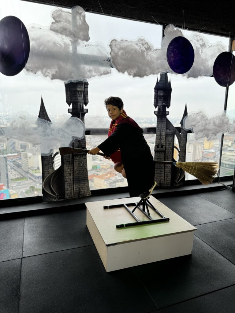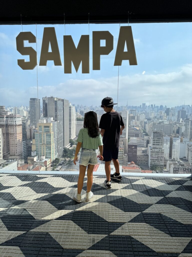 Além disso, foi inaugurada uma exposição permanente sobre a história de São Paulo, que ajuda a contextualizar tudo o que a gente vê lá de cima. As crianças podem reconhecer monumentos, identificar bairros e entender um pouquinho mais da cidade em que vivem ou estão visitando. Tudo de forma leve, interativa e visual! Outra novidade é o Sampa SKY 360°, um óculos de realidade virtual que te faz voar por cima da cidade.