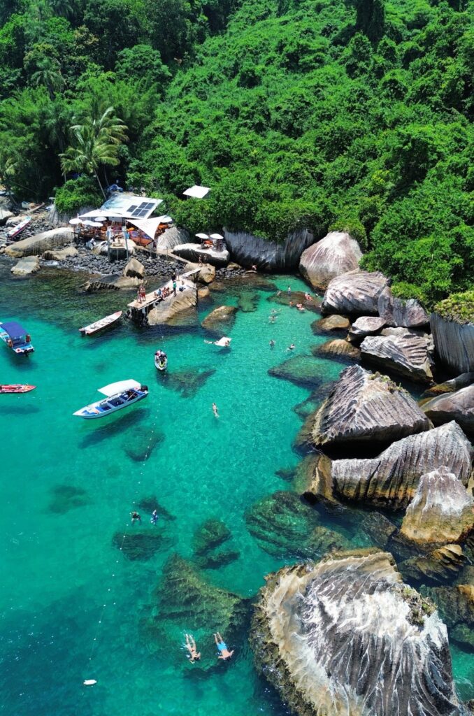 Ilhabela é outro destino que adoramos e que nos surpreendeu. O passeio já começa especial: atravessar de balsa e ver a ilha se aproximando dá aquela sensação boa de aventura prestes a começar. Nos pegamos o carro e saímos explorando de norte a sul, parando em praticamente todas as praias pelo caminho. É incrível como cada uma tem um charme diferente, algumas mais agitadas, outras quase desertas, mas todas rodeadas pela natureza estonteante da mata atlântica.